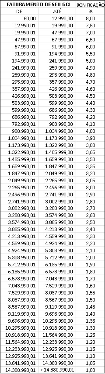 - O valor do pagamento, será referente às compras confirmadas e pagas pelo GCI até o último dia útil do mês anterior.